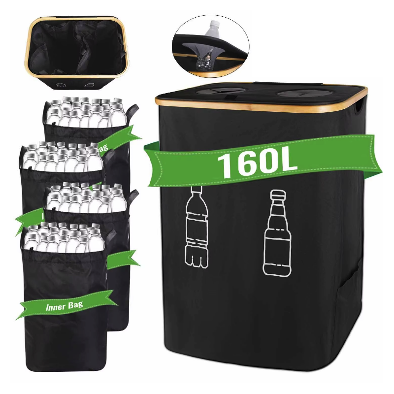 Pojemnik na puste butelki do recyklingu 160L, składany worek na butelki z tkaniny Oxford, 4 wewnętrzne worki do użytku wewnątrz lub na zewnątrz.