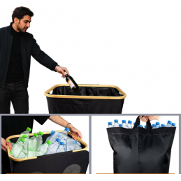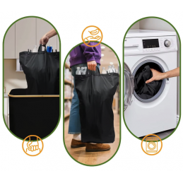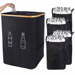 Cztery wyjmowane worki: Ten pojemnik na butelki jest wyposażony w cztery wyjmowane worki wewnętrzne, które można łatwo wyprać w pralce. Wewnętrzne torby zapinane są na rzepy, co ułatwia ich wyjmowanie i zamykanie.🧺✂️