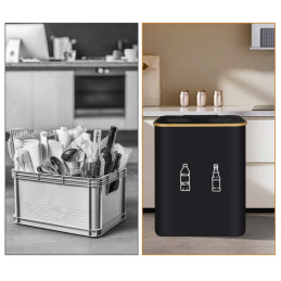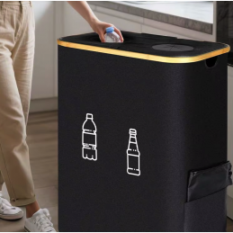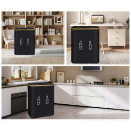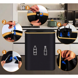 Pojemnik na butelki z perforacją: Górna część pojemnika na butelki posiada pokrywkę z dwoma okrągłymi otworami silikonowymi, dzięki czemu nie trzeba otwierać pokrywki. Wystarczy włożyć butelkę do silikonowych otworów, a otwory zamkną się automatycznie, skutecznie zapobiegając powstawaniu nieprzyjemnych zapachów.🚫💨🔴