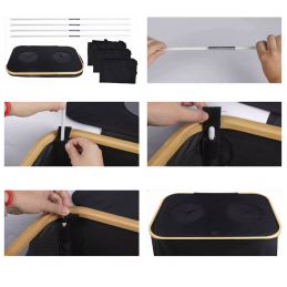 Wytrzymały materiał: Pojemnik na butelki wykonany jest z wysokiej jakości tkaniny Oxford 600D, która nie jest łatwa do rozdarcia nawet po długotrwałym użytkowaniu. Solidna konstrukcja nośna składa się z 4 wzmocnionych prętów z włókna, które są wyjątkowo stabilne, niełatwe do odkształcenia, składane i łatwe w montażu. Pojemnik w kolorze czarnym.💪🛡️📦