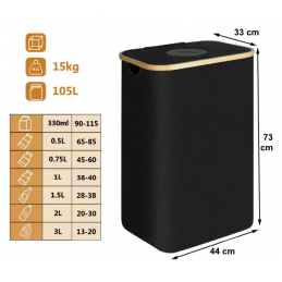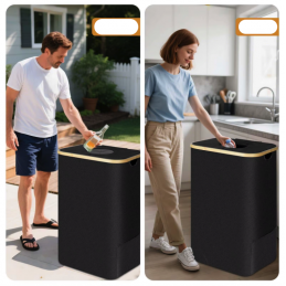 📦Pojemność 105 l: Wymiar 44 x 33 x 73 cm, ten pojemnik z łatwością pomieści 30–40 pustych butelek (szkło, plastik lub puszki). Maksymalizuje przestrzeń pionową, jednocześnie utrzymując porządek w kuchni lub garażu.
