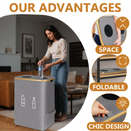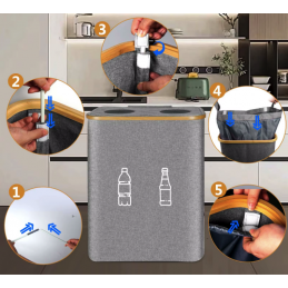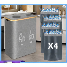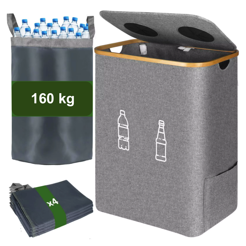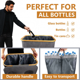Cztery wyjmowane worki: Ten pojemnik na butelki jest wyposażony w cztery wyjmowane worki wewnętrzne, które można łatwo wyprać w pralce. Wewnętrzne torby zapinane są na rzepy, co ułatwia ich wyjmowanie i zamykanie.🧺✂️