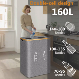 Duża przestrzeń do przechowywania: Ten pojemnik na butelki ma wymiary 57 cm x 37 cm x 75 cm i pojemność 160 litrów, mieszczący około 100 pustych butelek. Idealnie nadaje się do przechowywania butelek pochodzących z recyklingu, butelek szklanych, butelek plastikowych lub puszek.🧴🍶
